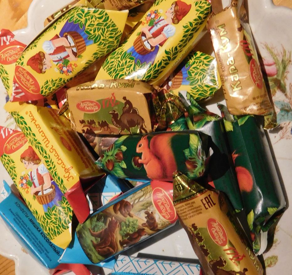 Легенда́рные конфе́ты «Ми́шка косола́пый» от фа́брики «Кра́сный Октя́брь».